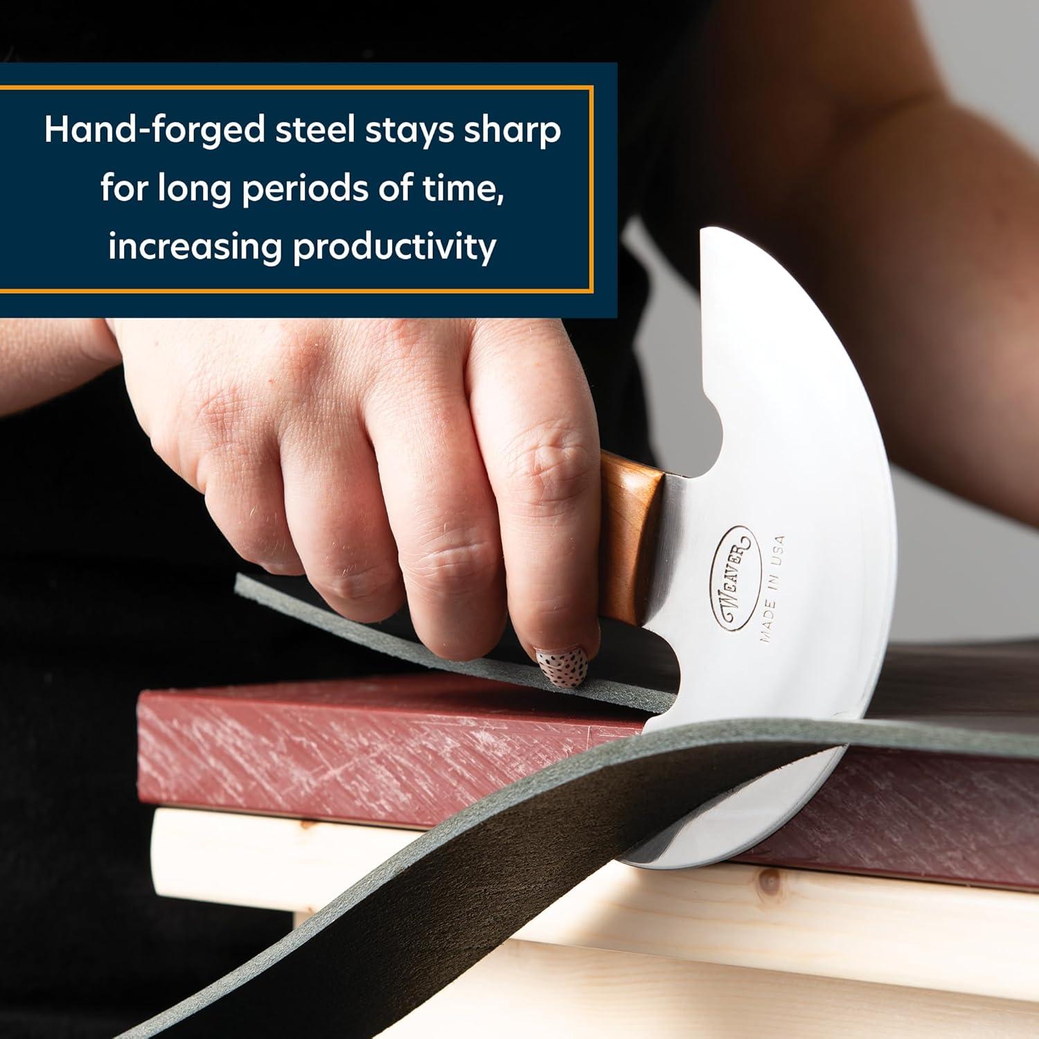 Weaver Leather Supply Master Tool Round Knife, 4-7⁄8”, Hand-Forged Leather Cutting Tool with White Oak Handle, Head Knife for Strips, Skiving, and More